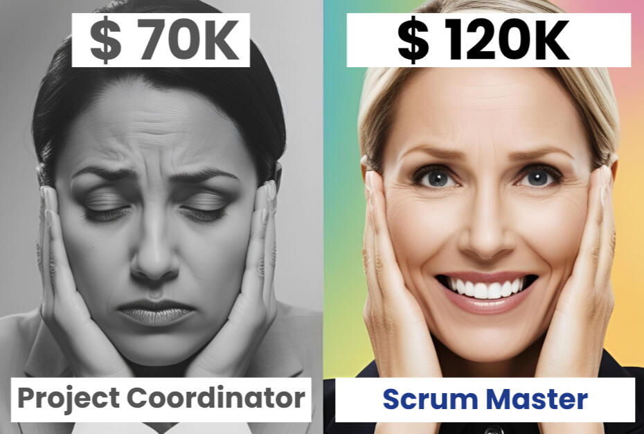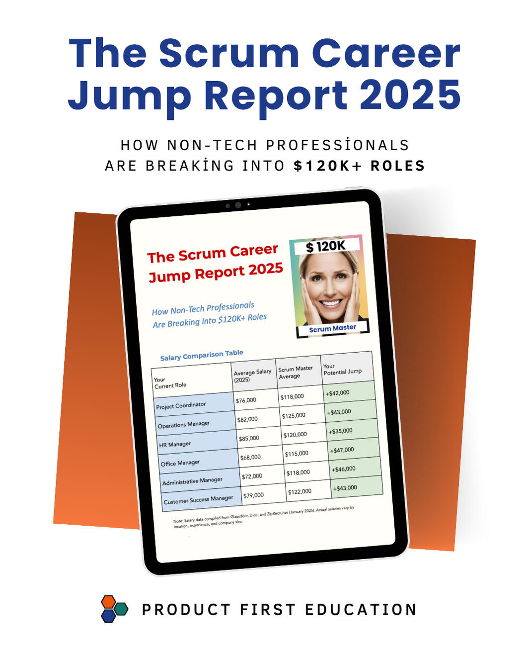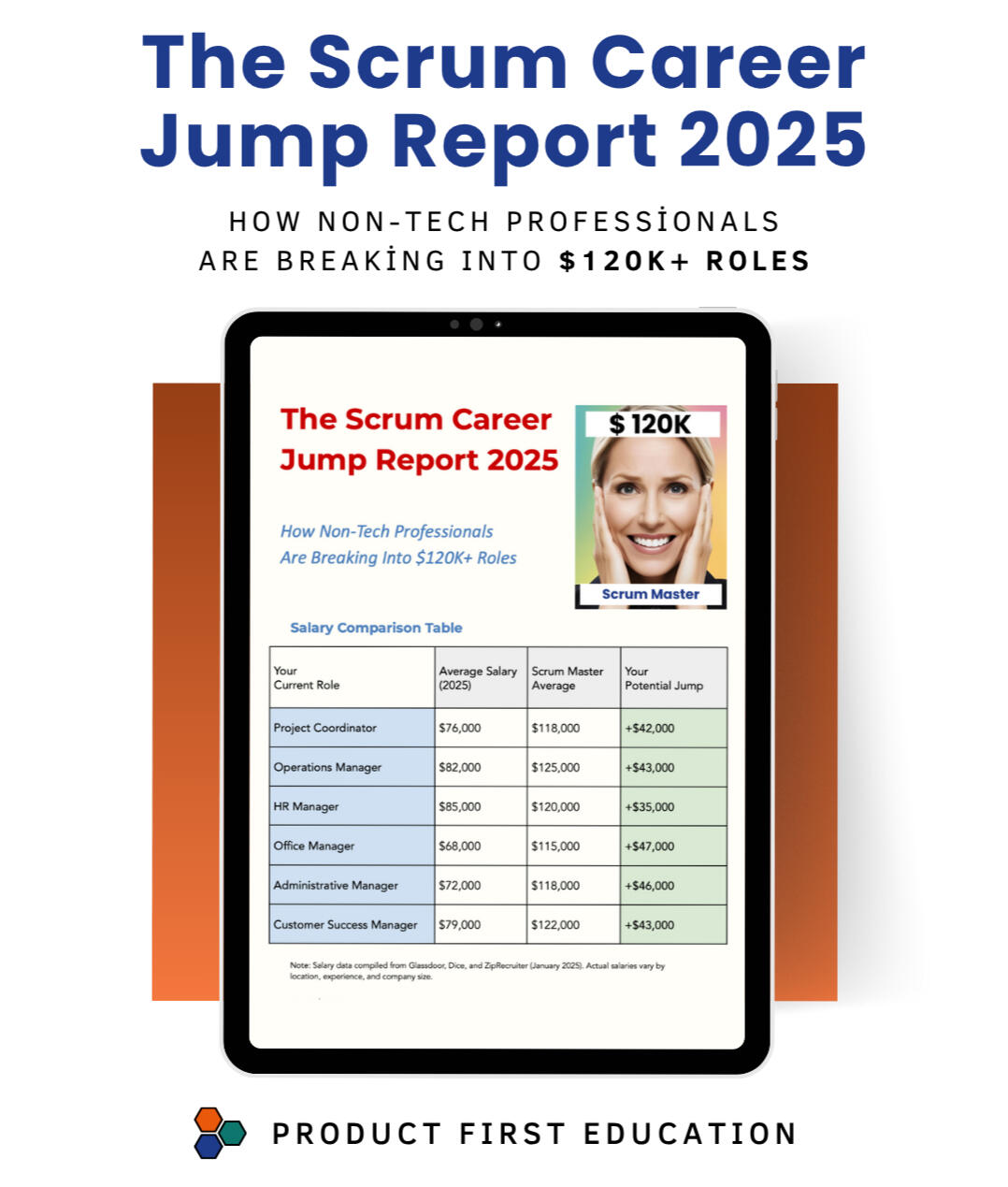 communication, facilitation, and leadership.Inside this free report, you'll see how professionals from education, HR, operations, and marketing transitioned into high-paying Scrum Master roles - and doubled their income.No coding required.Just the right training and positioning.